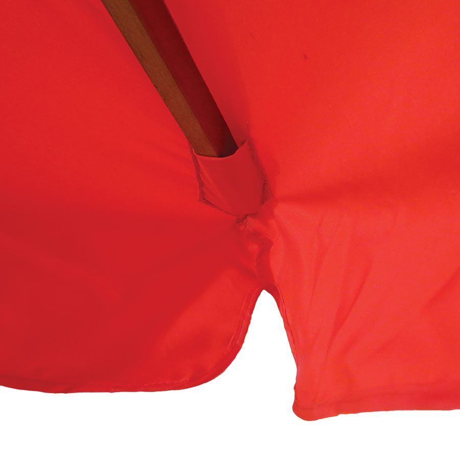 Heavy duty wooden stem and ribs with pull cord opening, 100% PET canopy made from recycled plastic bottles
