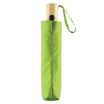 Convenient automatic open/close function for quick opening and closing, high-quality windproof system for maximum frame flexibility in stormy conditions, STANDARD 100 by OEKO-TEX® certified polyester pongee cover material made of recycled plastics, bamboo handle with black push-button and promotional labelling option plus colour co-ordinated sleeve. Also available as midsize umbrella (art. 7379).