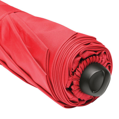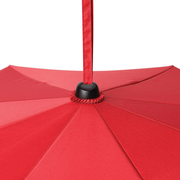 Simple and safe handling by safety runner, high-quality windproof system for maximum frame flexibility in stronger gusts of wind, soft feel handle with removable carrying strap in the colour of the cover and with promotional labelling option, top with hanger function for carrying strap for decorative purposes, easy on/off switching of the light on the safety runner
