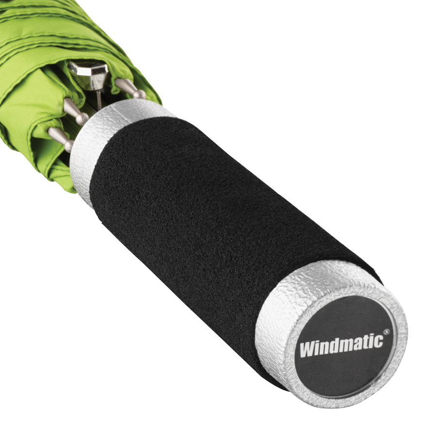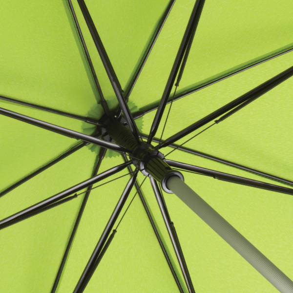 Convenient automatic function for quick opening, high-quality windproof system for maximum frame flexibility in stormy conditions, flexible fibreglass ribs, lightweight but strong aluminium shaft, water and dirt-repellent cover properties through original