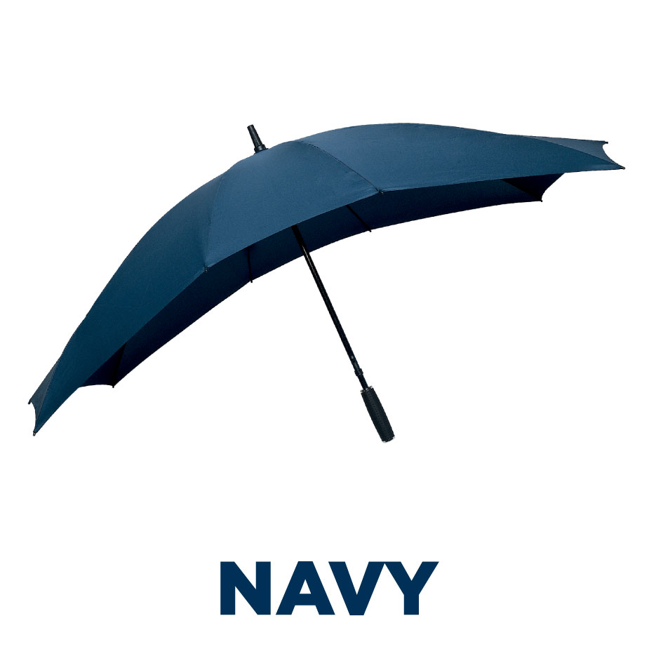 duo umbrella, black fiberglass stick, black fiberglass ribs, black rubber coated handle.