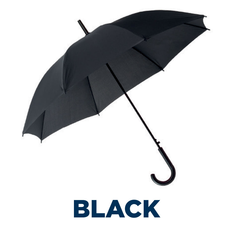 Falconetti umbrella, automatic, black stick, fiberglass ribs, polyester pongee cloth, black plastic hook and tips